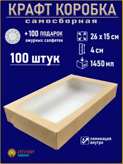 Коробка с окном 26 х 15 х 4 см - 100 штук