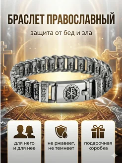 Браслет мужской на руку металлический оберег с гравировкой