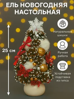 Настольная Ель с Натуральными Шишками (ручная работа)