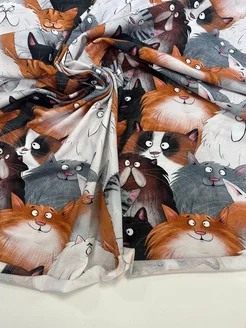 Ткань кулирка с лайкрой, кулирная гладь, кулир Котики