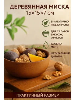 Деревянная миска для салата, закусок и фруктов 15×15×7 см