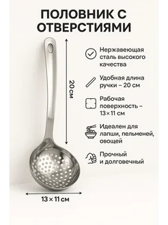 Шумовка-половник с отверстиями из нержавеющей стали, 20см