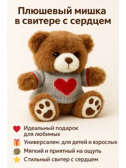 Плюшевый мягкий мишка с сердцем 20×20 см