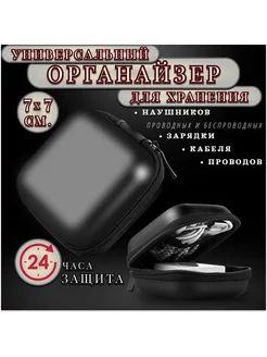 Чехол-кейс на молнии для наушников и аксессуаров (7х7 см.)
