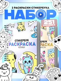 Стикербук Котики Вкусности скетчбук раскраска с наклейками