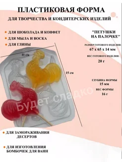 Форма пластиковая Петушки на палочке