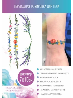 Переводная татуировка цветы лаванда, лошадь, сердечко