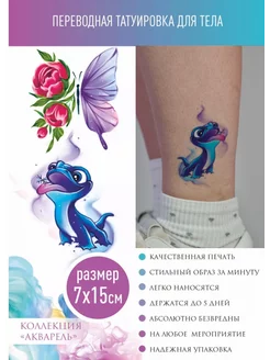 Переводная татуировка цветы бабочка, ящерка, новый год