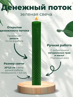 Свеча зеленая "Денежный поток" с травами и маслами, 20 см