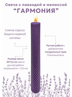 Свеча фиолетовая программная с лавандой и мелиссой 20 см