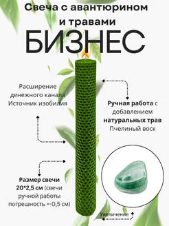 Свеча зеленая с травами и авантюрином "Бизнес" 20 см