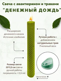 Зеленая свеча с авантюрином и травами "Денежный дождь" 20 см