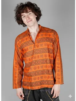 Рубашка из лоскутов, цвет оранжевый, коричневый, желтый, M
