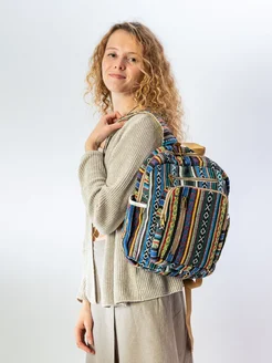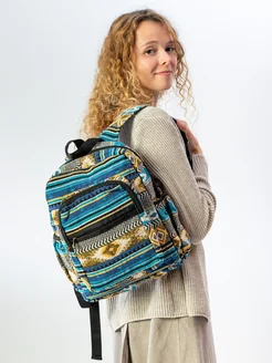 Рюкзак из жаккарда с ромбами в синюю, черную, желтую полоску