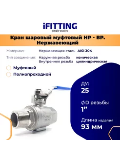 Кран шаровый нержавеющий 1 ДУ 25 мама-папа AISI 304