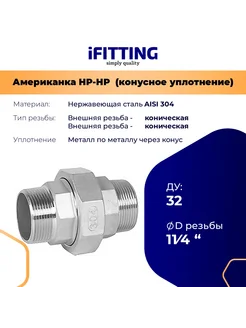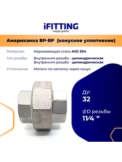 Американка муфта коническая ДУ 1 1 4" 32 мм вр-вр AISI304