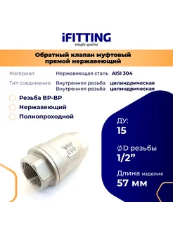 Клапан обратный нержавеющий 1 2" DN15 AISI304