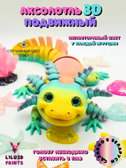Аксолотль Подвижный, Игрушка Антистресс, 3D печать