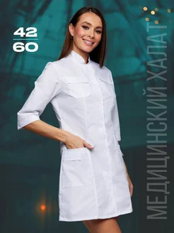 Белый медицинский халат с рукавом 3 4 на кнопках