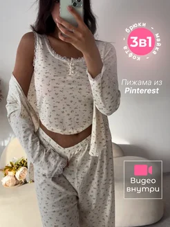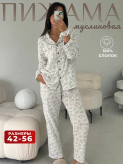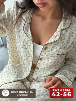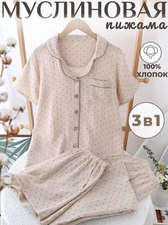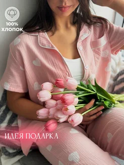 Пижама муслиновая со штанами и рубашкой с сердечками