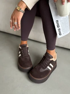 Короткие угги на платформа кеды зимние