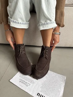 Ботинки на шнурках натуральная замша лоферы