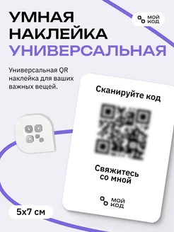 Универсальная Умная QR Наклейка "МОЙКОД" для вещей 5 на 7 см