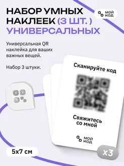 Набор универсальных Умных QR Наклеек для вещей 3 шт мелкие