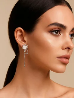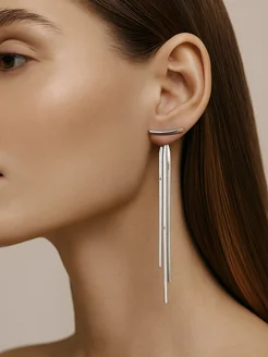 Серьги бижутерия длинные висячие конго пусеты 2в1