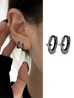 Серёжки конго с звездой-крестом черные