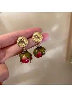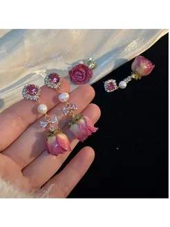 Серьги розы крупные с бабочкой и жемчугом длинные