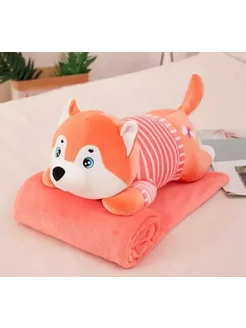 Мягкая игрушка подушка собака хаски с пледом 3 в 1
