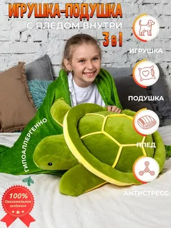 Большая мягкая игрушка-подушка с пледом черепаха 50 см