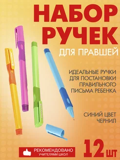 Ручки шариковые синие тренажер для Левшей 12 штук