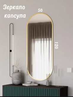 Настенное зеркало овальное 120х50 см золотая окантовка