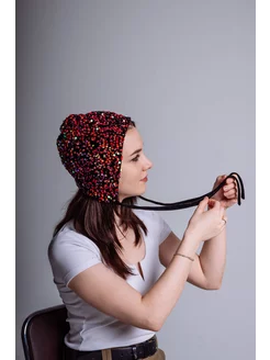 Чепчик с пайетками на завязках