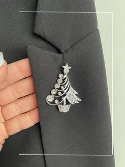 Брошь елочка серебристая со стразами