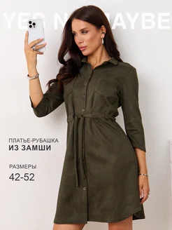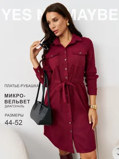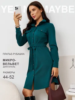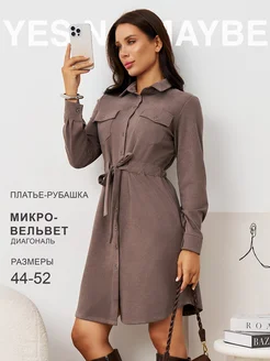 Платье-рубашка на кулиске с длинным рукавом теплое