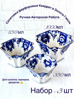 Салатники фарфоровые Квадрат в Золоте Гжель
