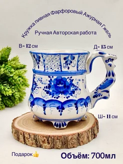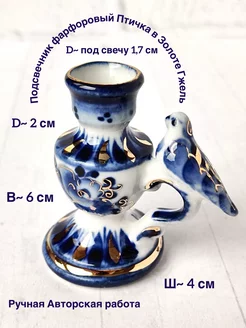 Подсвечник фарфоровый Птичка в Золоте Гжель