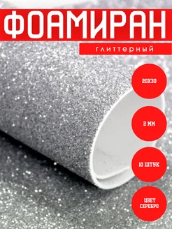 Фоамиран глиттерный с блестками 2мм серебро