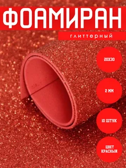 Фоамиран глиттерный с блестками 2мм красный