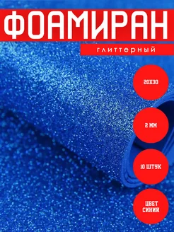 Фоамиран глиттерный с блестками 2мм синий