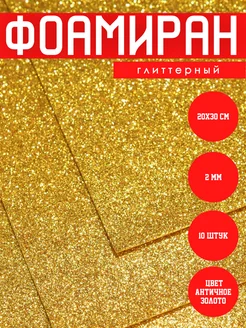 Фоамиран глиттерный с блестками 2мм золотой