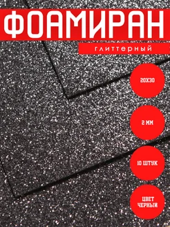 Фоамиран глиттерный с блестками 2мм черный