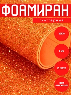 Фоамиран глиттерный с блестками 2мм оранжевый