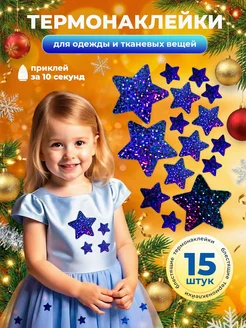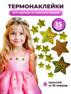 Термонаклейка на одежду блестящая, термозаплатка, 15 шт