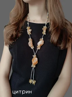 Бусы длинные из камня цитрина Дикий камень