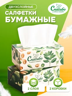 Салфетки бумажные в коробке двухслойные 2 упаковки по 180 шт