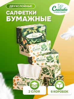 Салфетки бумажные в коробке двухслойные 6 упаковок по 180 шт
